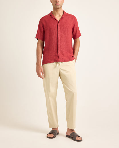 Clouds, if they dare to appear, serve merely as silken scarves sliding across an extravagantly blue sky. The hush of a midday breeze calls for the perfect summe shirt. The Maitan moves with effortless ease - lightweight, Italian woven linen - a classic, reworked - refined but rebellious, like the man who wears it. A hint of playfulness beneath clean precision. The Capri collar rests just open enough, the concealed placket keeping its refinement intact. A shirt made for slipping between worlds, for moments that feel like déjà vu. Feel Summer.