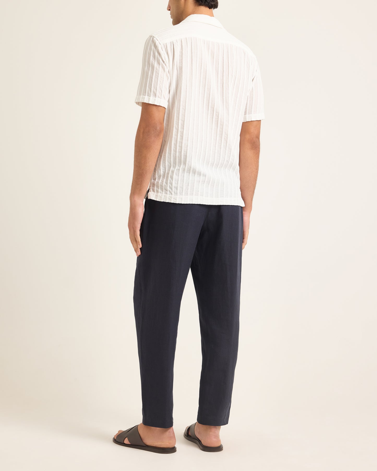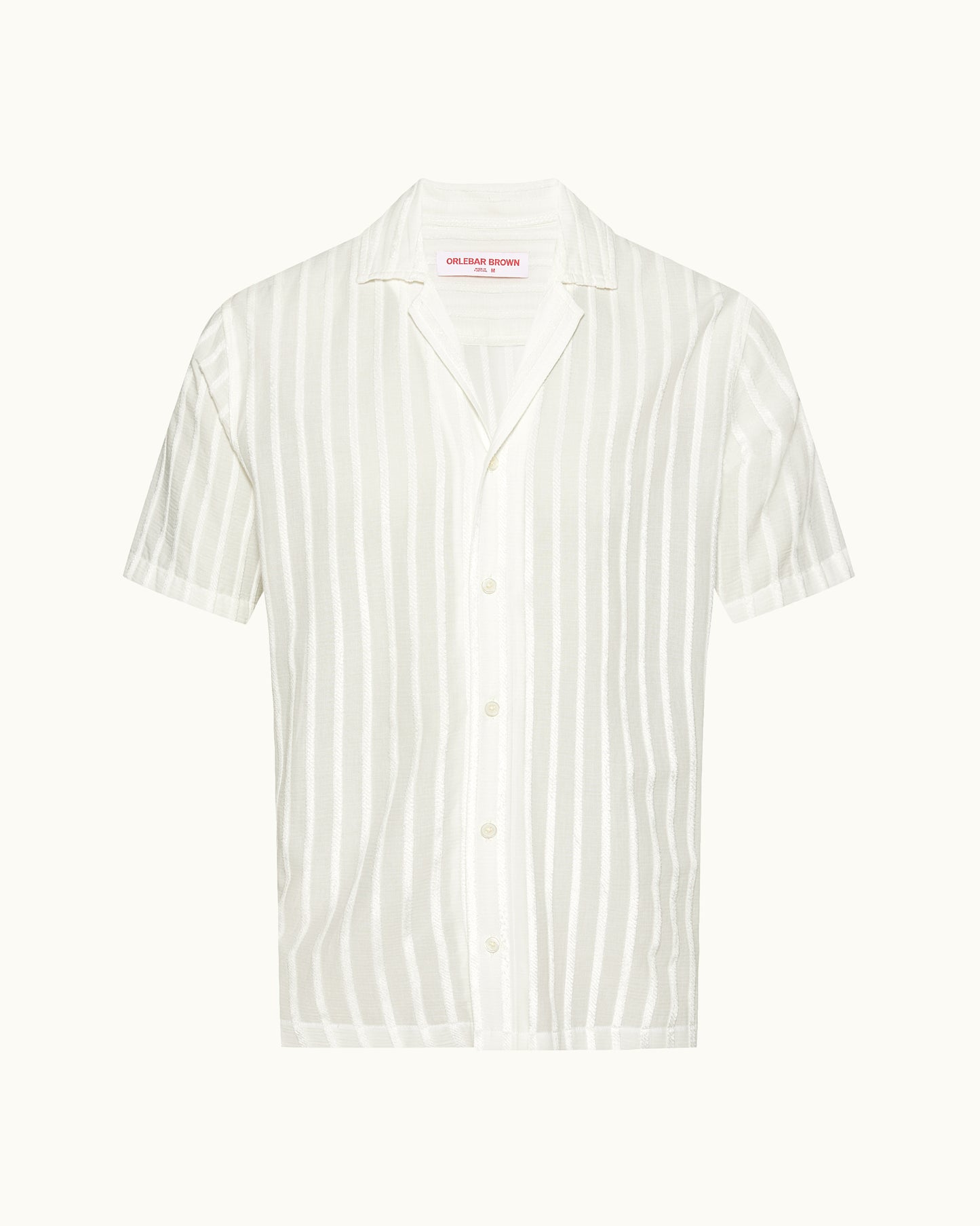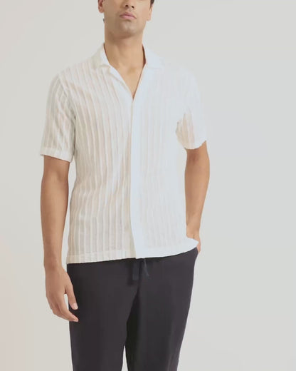 Madame Dubois has been gathering wild herbs in these Provençal hills for sixty years, and she's agreed to share her secrets with exactly one student today. You follow her sure-footed path through thyme and lavender, learning to distinguish edible from poisonous with stakes that feel appropriately high. Maitan's chenille stripe speaks the same botanical language—textured fabric that harmonises with wild rosemary and sage whilst the White colour camouflages amongst the real foliage. The shirt moves silently through herb gardens, earning nods of approval from your exacting teacher who judges students by their respect for nature's complexity. When you correctly identify wild fennel by scent alone, she hands you her grandmother's wicker basket—a passing of torch that comes with responsibility. "Les herbes," she says, crushing mint between weathered fingers, "they choose who understands them." Your pantry will never be the same. Neither will your relationship with the earth. Feel Summer.