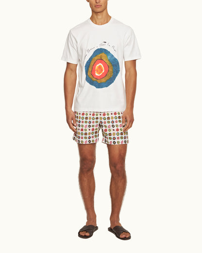 Orlebar Brown introduces an original design for the OB Standard T for Burnt Fen Flowers. Alfie Nickerson is on a mission to prioritise biodiversity and wildlife conservation on his farm, Burnt Fen. The land has not seen a single drop of pesticide or artificial fertiliser. And the results are nothing short of kaleidoscopic. This Standard T features artwork inspired inspired by the flowers at Burnt Fen, with illustrations created by artist Joe Fox This short-sleeved T-shirt has a comfy, relaxed fit, making it a great choice for casual sunny weekends. The Italian-woven cotton is durable and smooth with a thicker feel than regular cotton, thanks to the interlock jersey finish.