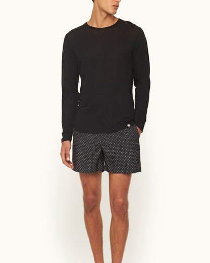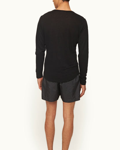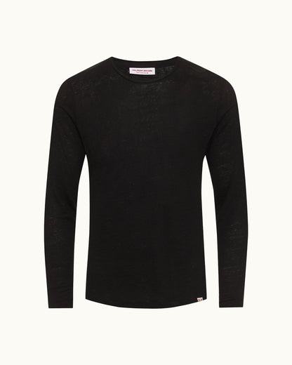 This long-sleeve OB-T is made from the lightest Italian linen. Not only does the fabric drape effortlessly to make you look great, but it also keeps moisture at bay so that you can remain cool and comfy all day. In classic black, this crewneck T-shirt is the ultimate layering piece.