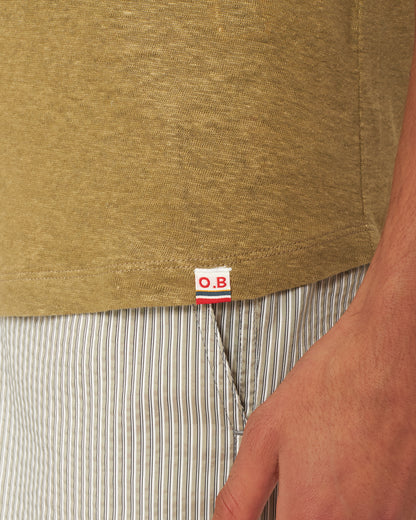 Our crewneck OB-T Linen is a holiday favourite. It's made from the lightest Italian linen jersey that drapes effortlessly, ensuring you feel cool and comfortable throughout the day. This short-sleeved T-shirt's Agave Green colour adds an earthy tone to any outfit.