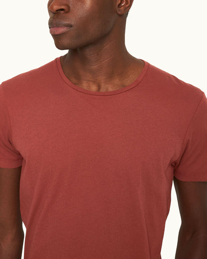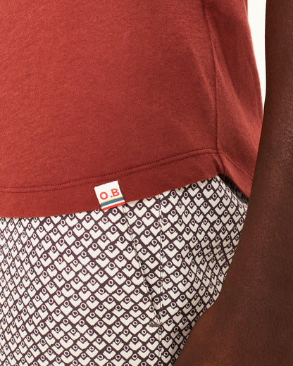 Enjoy unbeatable comfort and the perfect fit with our iconic OB-T in rich Copper Red. Our signature crewneck T-shirt's curved hem and slim tailored fit create a flattering silhouette. Plus, the breathable organic cotton treats you to a level of softness you won't want to take off.