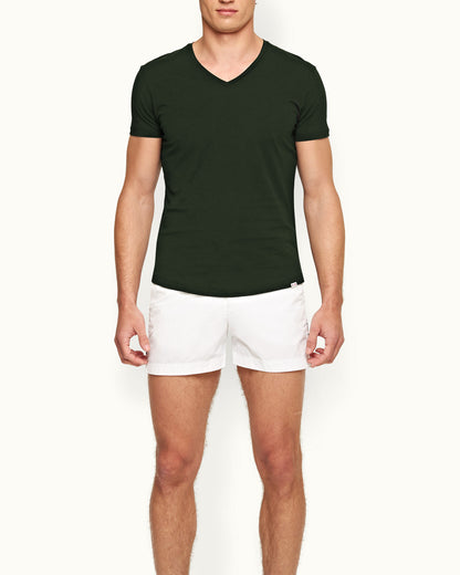 A super-lightweight cotton tee is an indispensable part of any casual wardrobe. Our OB-V is tailored to perfection to sit close to the body without feeling too snug. The OB V is our ever popular classic V-neck t-shirt. Lightweight with a lean yet relaxed fit and curved hem, and made from super soft 100% pima cotton.