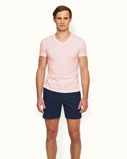 The OB-V in Pink Sand is our original v neck tee. Made with supersoft lightweight fabric, a tailored silhouette and curved hem, 100% pima cotton, it has a luxurious feel and superb fit, making it one of our most popular T-shirts.
