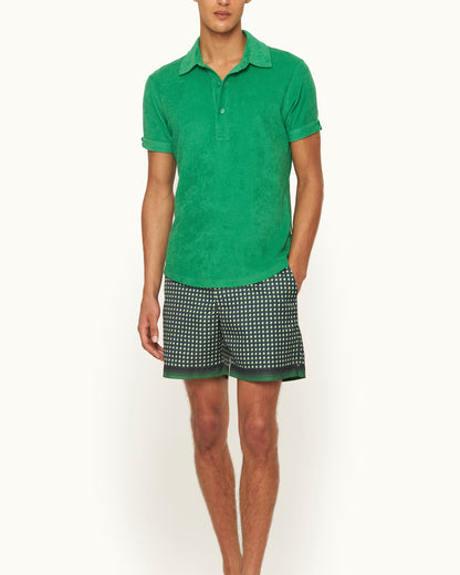 Look and feel your best in this bold Sebastian polo shirt. Our hero holiday style comes with all the key features that make the Sebastian stand out: a deep three-button placket, a flattering tailored fit and a sturdy two-piece collar. The addition of vibrant green towelling fabric will soak up any splashes the pool throws your way.