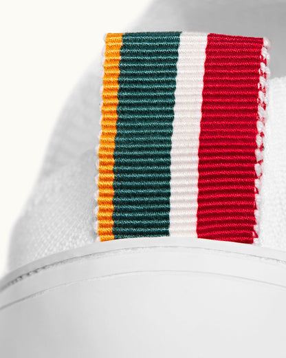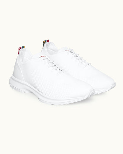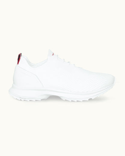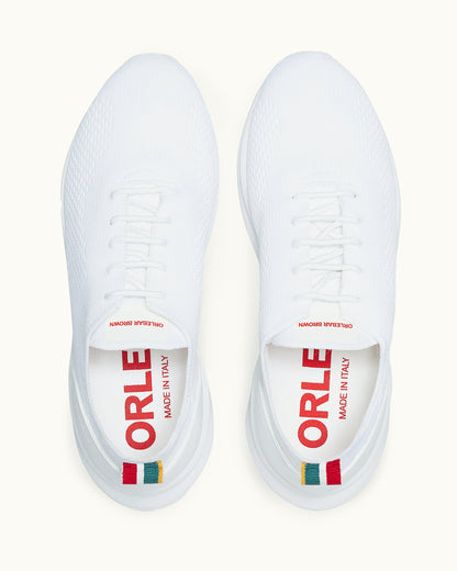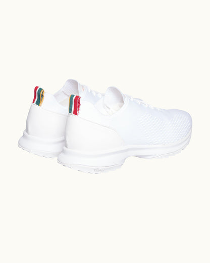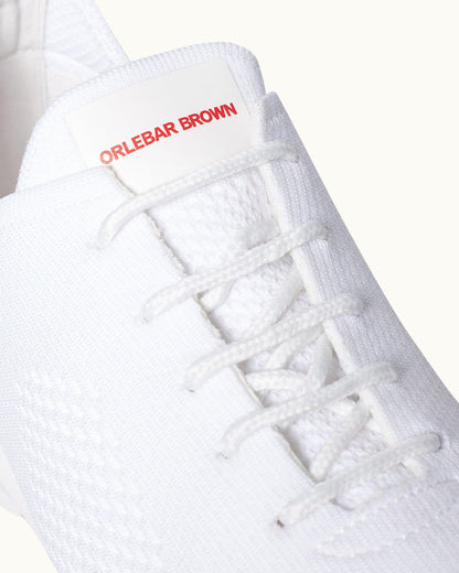Our Somerled trainers in classic White feature a robust Vibram© sole unit, an ergonomically knitted stretch upper, and rubberised bonded tongue branding. The O .B red branded heel counter is the ultimate finishing touch