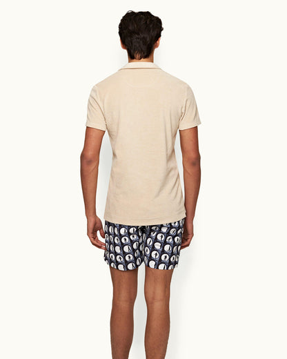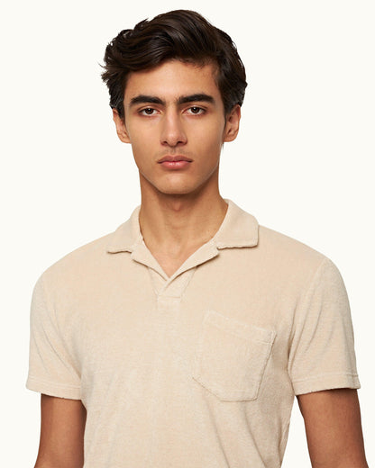 This classic towelling polo shirt provides you with an absorbent, vintage-inspired layer for all your pool-related pursuits. In barely-there taupe, this organic cotton towelling polo should always take the top spot in your holiday suitcase.