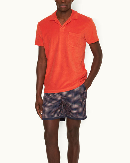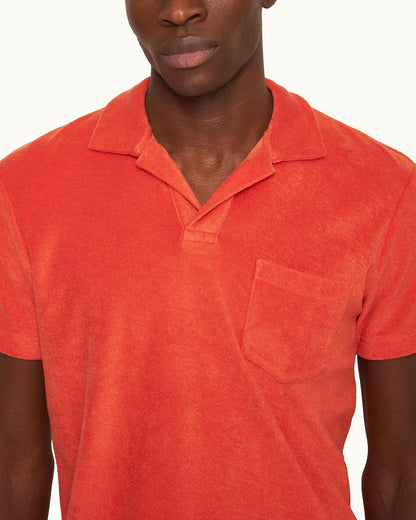 Our Terry towelling polo shirt is a true O .B Hero. This timeless holiday style boasts a modern, tailored fit that produces a favourable silhouette. It is elevated by an authentic resort placket and a straight hem that looks best worn untucked.